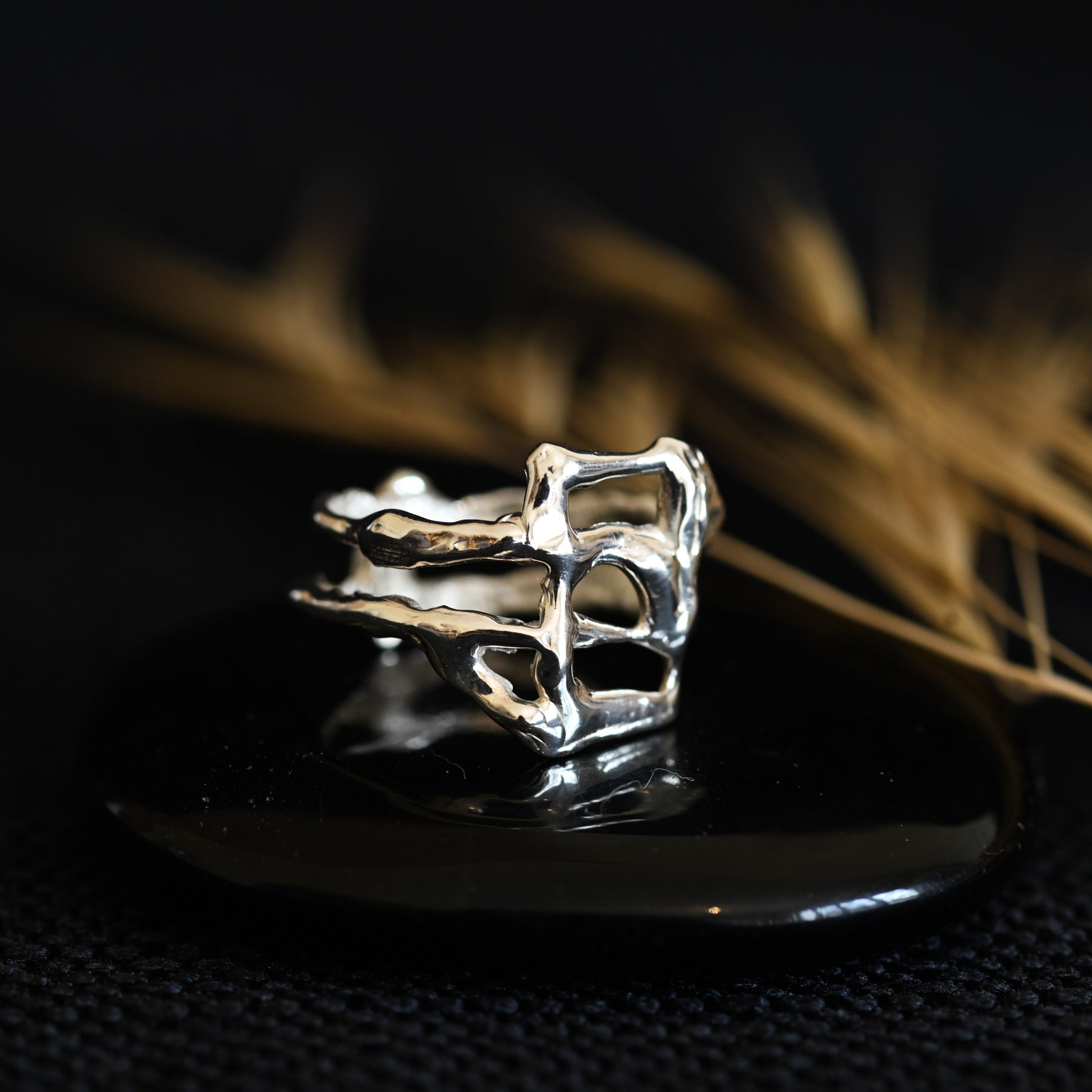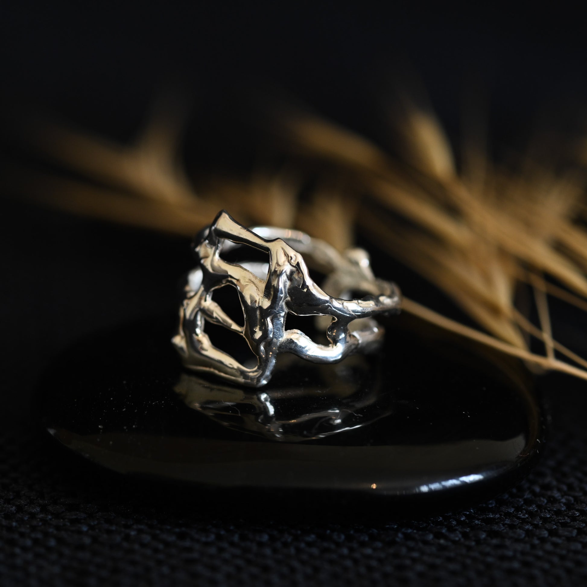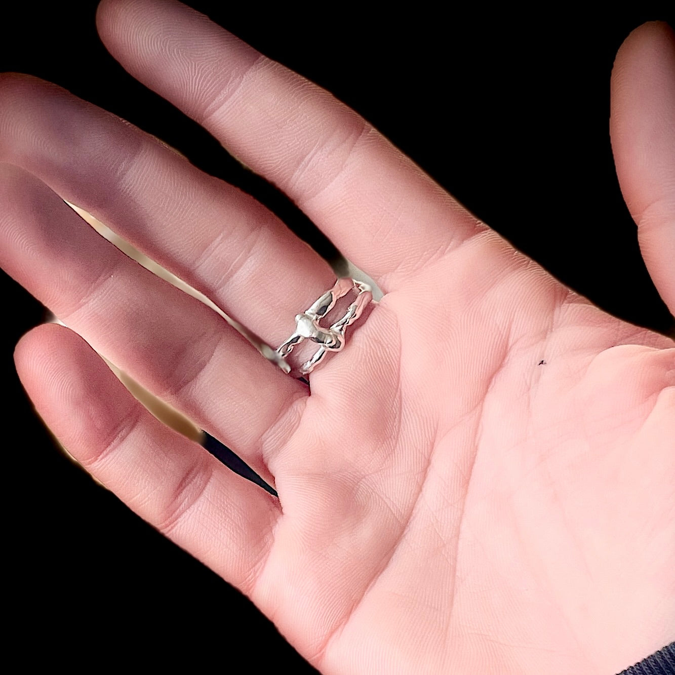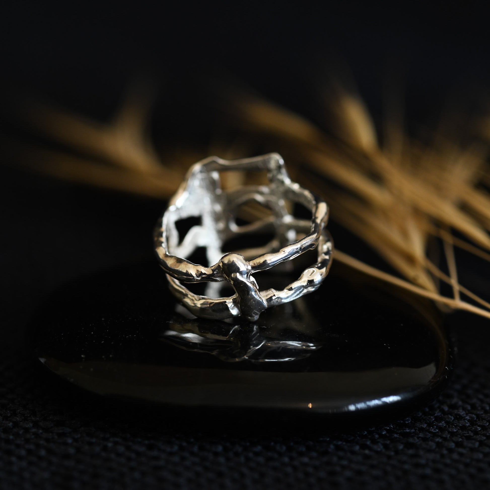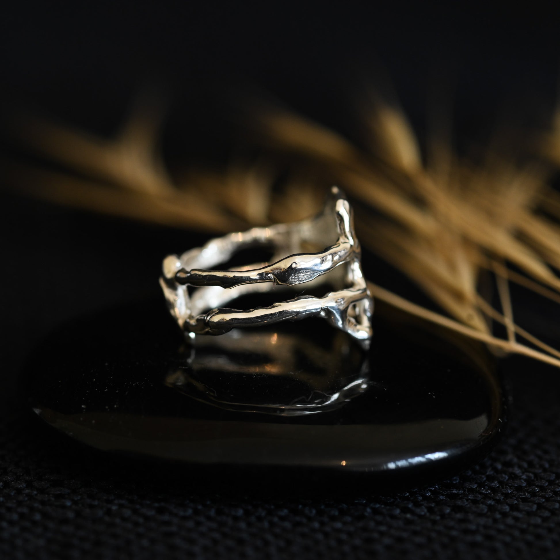 A unique ring, hand-sculpted in wax, then transformed into 925 sterling silver using the lost-wax casting method, one of the oldest traditional techniques (4000 years old). This method allows me to create very organic pieces that perfectly fit the finger.