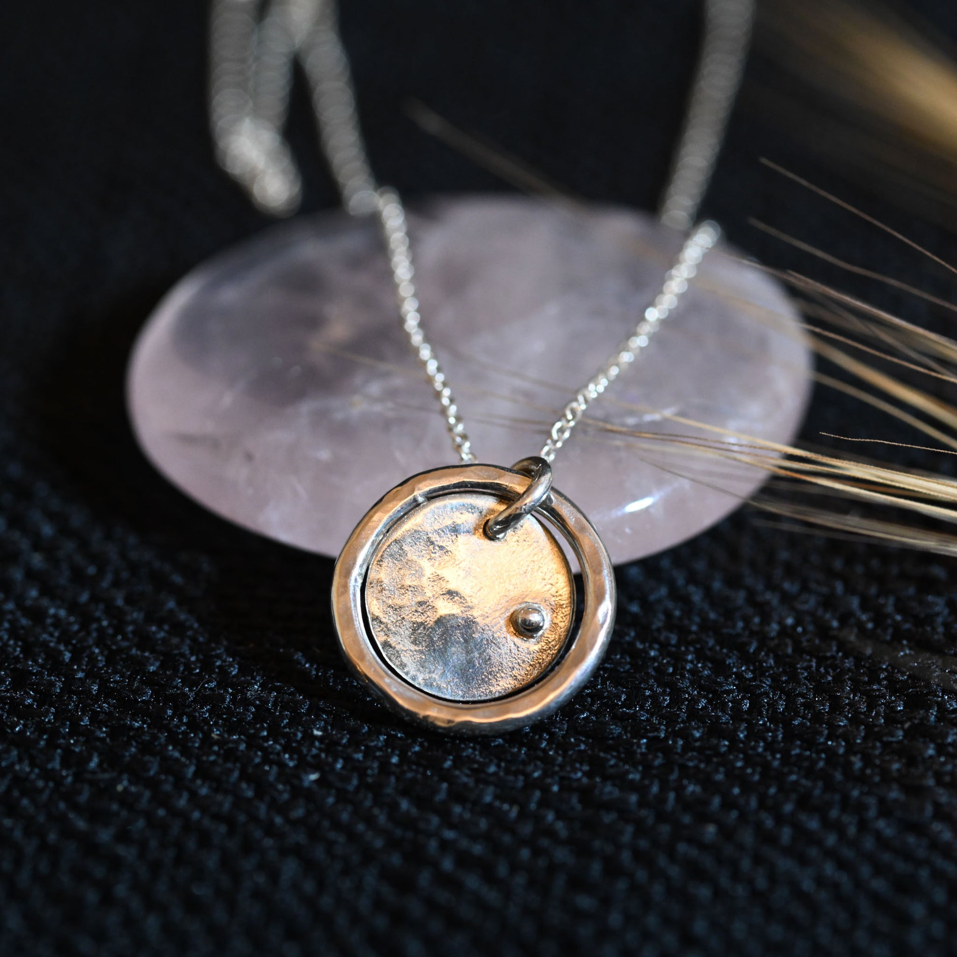 Pendentif unique, un peu plus petit que Nara, un sceau d'argent l'entour, pour le rendre dynamique. un petit talisman à porter tous les jours ou pour une occasion spéciale..